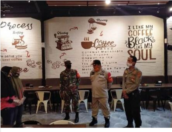 Kepala BPBD Tulang Bawang Kanedi Berikan Sosialisasi Pendisiplinan Protokol Kesehatan Baru Normal Kepada Pihak Cafe Tasya Unit 2 Banjar Agung.