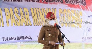 Dalam kesempatan ini Bupati mendistribusikan 9500 liter minyak goreng di kecamatan Menggala.