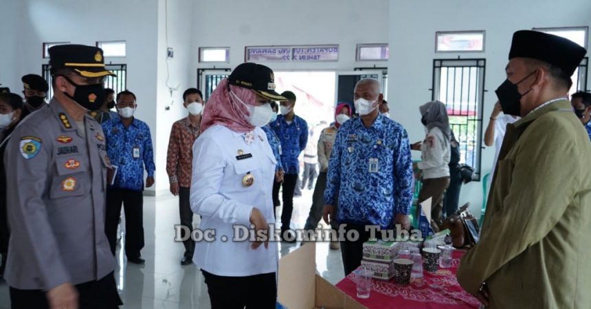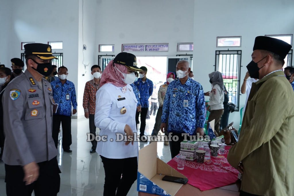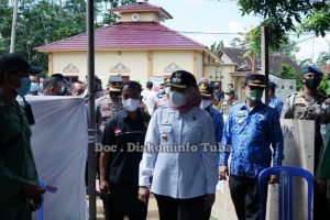 Catatanlampung.com-(Tuba)- Bupati Tulang Bawang Dr Hj Winarti, S.E.,M.H. melaksanakan monitoring Kegiatan Pilkakam serentak yang digelar di 48 Kampung Se- kabupaten Tulang Bawang, Kamis,17/3/2022.