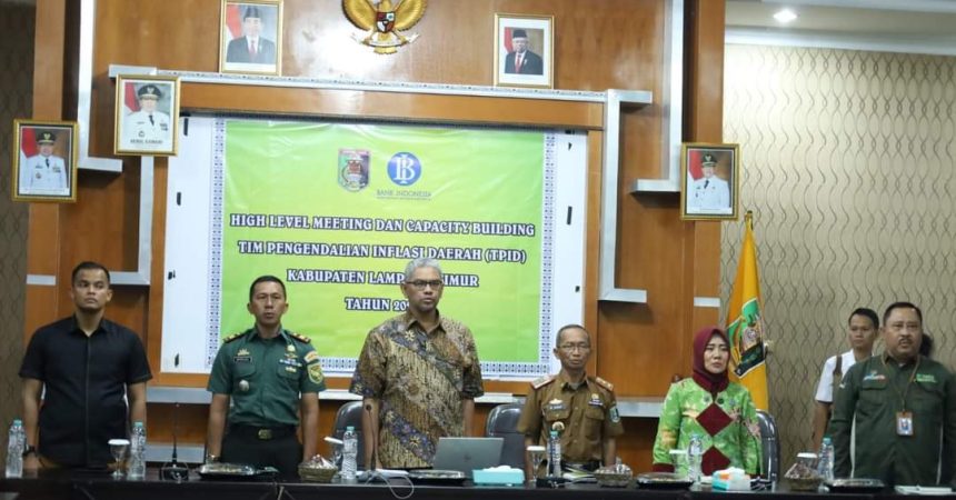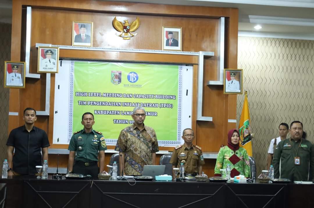 Sekretaris Daerah Kabupaten Lampung Timur Ir Moch Jusuf mewakili Bupati Lamtim saat membuka High Level Meeting dan Capacity Building TPID sebagai langkah strategis menjelang Hari Besar Keagamaan Nasional (HBKN) Ramadhan, Idul Fitri 1445 H, yang digelar di Aula Utama Sekdakab Lamtim, turut hadiri dalam acara ini Ketua TP PKK Kab Lamtim Yusbariah Dawam Rahardjo, Pimpinan BI Perwakilan Prov Lampung Fiskara Indrawan, Kepala BPS Lamtim Ir. Maryono, perwakilan Bulog Lamtim Kapolres Lamtim, Dandim Lamtim dan jajaran Forkopimda. selasa (27/02/2024).
