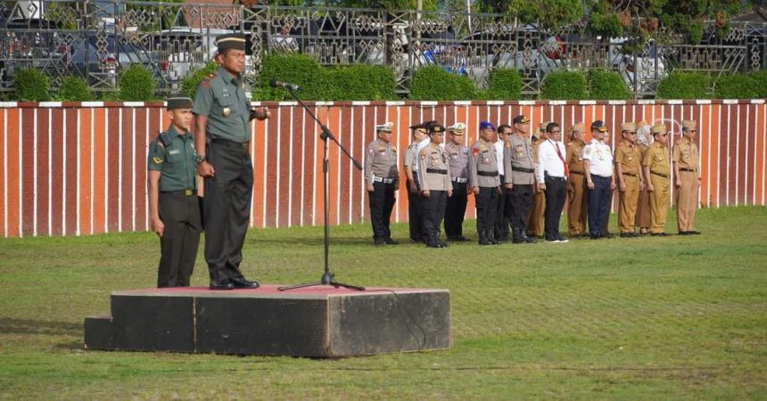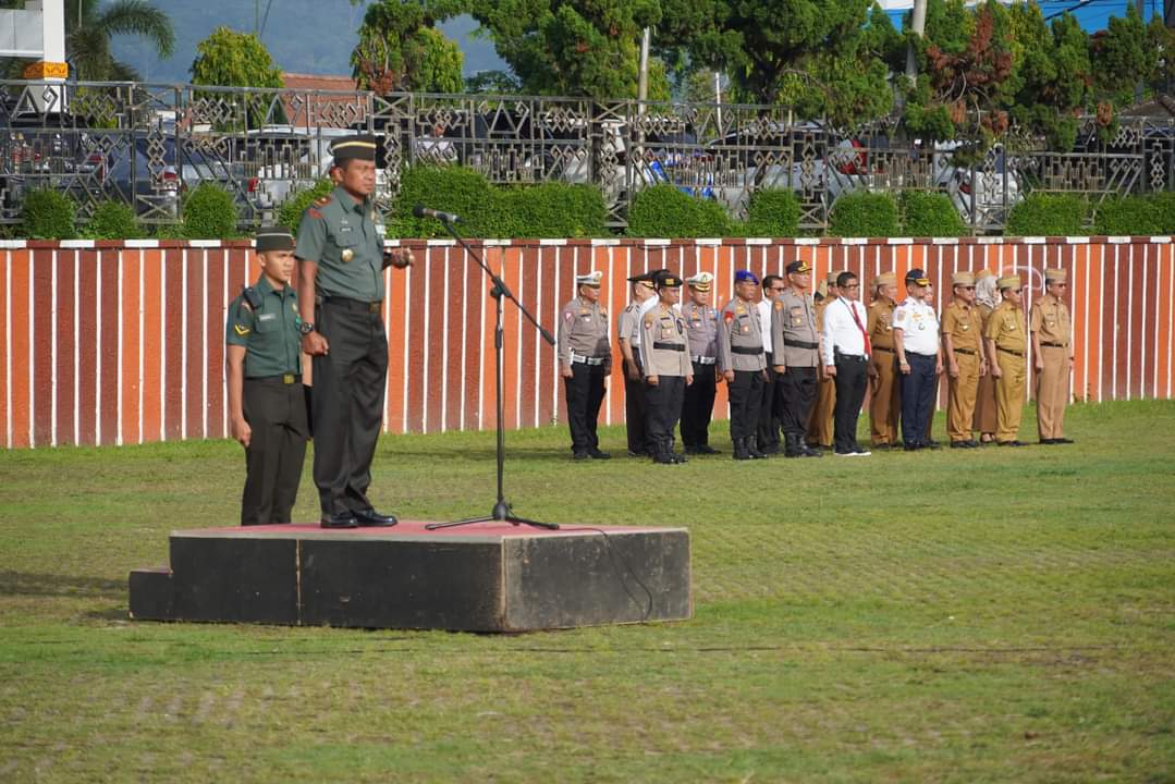 Komandan Korem 043/Gatam Brigjen TNI Iwan Ma’ruf Zainudin menjadi Pembina Upacara Bulanan bersama Forkopimda Provinsi Lampung di Lapangan Korpri, Kantor Gubernur, Senin (04/03/2024).