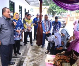 Lakukan kegiatan Safari Ramadan 1445H, Gubernur Lampung Arinal Djunaidi membuka secara resmi Operasi Pasar Murah Hari Besar Keagamaan Nasional (HBKN) di Desa Sri Basuki, dan penyerahan bantuan sembako serta kursi roda di Desa Sindang Sari, Kecamatan Kotabumi, Kabupaten Lampung Utara, Senin (01/04/2024).