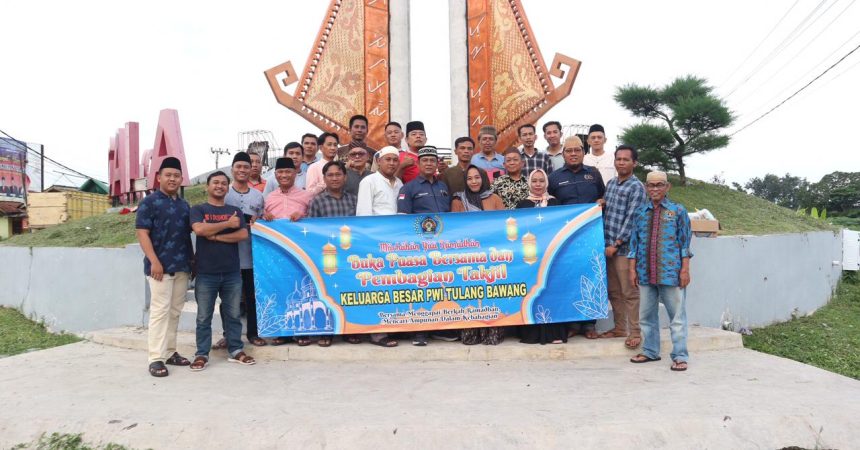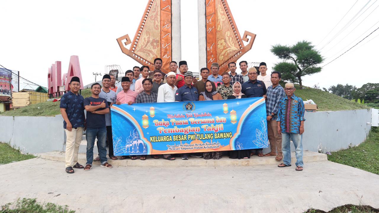 Persatuan Wartawan Indonesia (PWI) Kabupaten Tulangbawang menggelar buka puasa bersama, membagikan takjil dan santunan kepada 15 anak yatim di Aula Kantor PWI Kabupaten setempat, Kamis (04/04/2024).