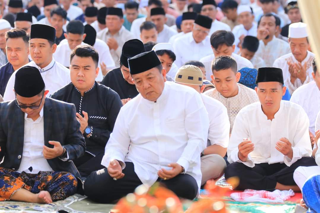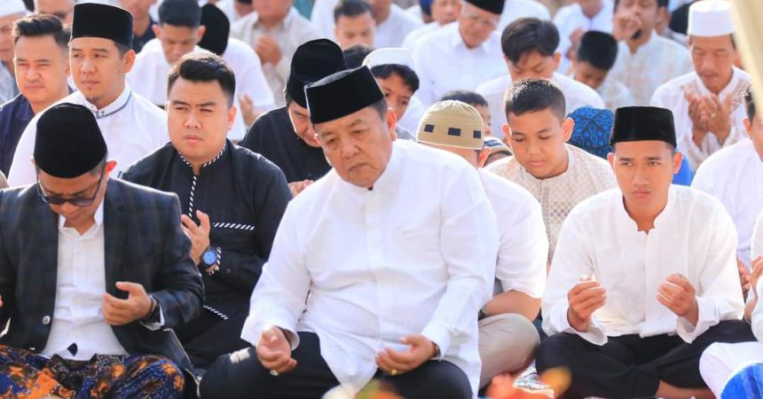 Gubernur Lampung Arinal Djunaidi bersama keluarga dan Forkopimda melaksanakan sholat Idul Fitri (Ied) 1445 Hijriah di Lapangan Korem 043 Garuda Hitam, Saburai Enggal Bandar Lampung, Rabu (10/4/2024).