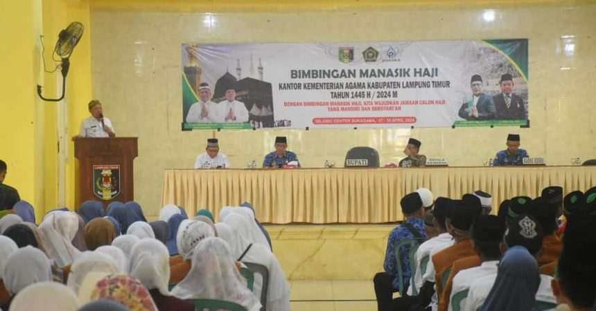 Kementerian Agama Kabupaten Lampung Timur menjalankan program manasik haji bagi 860 jamaah calon haji tahun 2024.Kegiatan yang diselenggarakan di Islamic Center Sukadana, Rabu (17 April 2024)