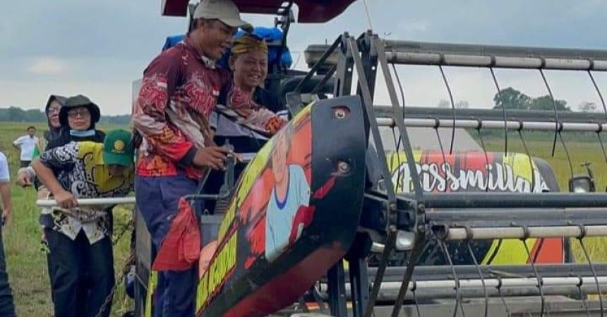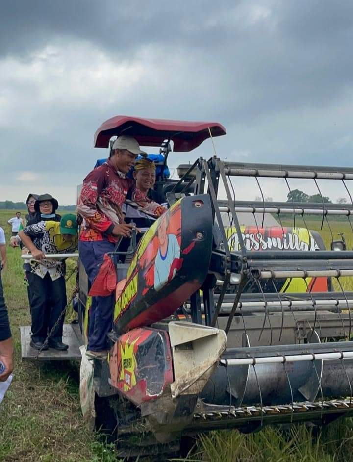 Mengawali Panen Raya Bupati Dawam Mencoba Secara Langsung pemanenan padi dengan menggunakan Combine Harvester.(*)