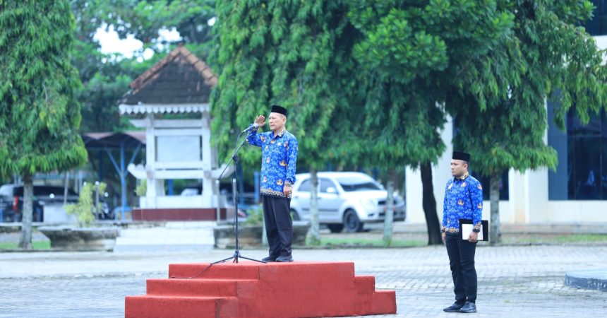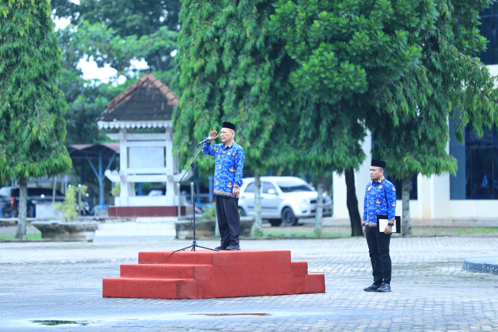 Di hadapan seluruh Peserta Upacara, PJ Bupati Tulang Bawang membacakan sambutan Menteri Pendidikan Indonesia Menteri Pendidikan, Kebudayaan, Riset, dan Teknologi, Nadiem Anwar Makarim.