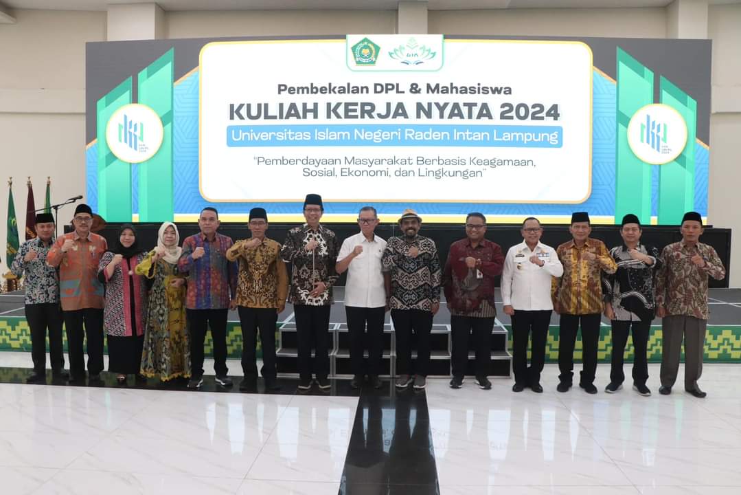 Gubernur Lampung diwakili Sekretaris Daerah Provinsi Lampung Fahrizal Darminto, menghadiri pembekalan Kuliah Kerja Nyata (KKN) Dosen Pembimbing Lapangan (DPL) dan mahasiwa tahun 2024, di Ballroom Universitas Islam Negeri Raden Intan Lampung (UIN RIL), Rabu (05/06/2024).