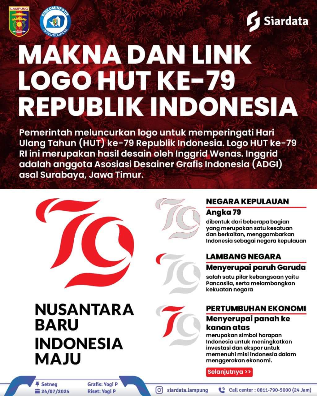 Surat Edaran Nomor 101 Tahun 2024 tentang Tema, Logo dan Partisipasi Menyemarakkan HUT Ke-79 Kemerdekaan RI Provinsi Lampung Tahun 2024: https://bit.ly/SEHUTRI79LPG(*)