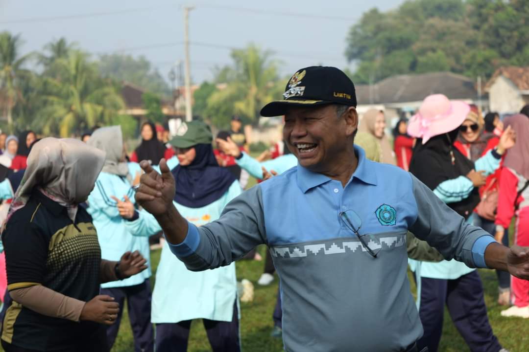 Bupati Lampung Timur M Dawam Rahardjo memberi sambutan sekligus membuka acara Pelaksanaan Gerakan Intervensi Serentek Pencegahan Stunting Tahun 2024, yang berlangsung di Lapangan Merdeka Desa Cempaka Nuban Kecamatan Batanghari Nuban, Jum’at (07 juni 2024).