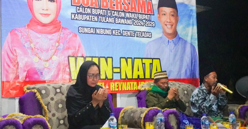 Lanjut nya ” oleh karena itu saya minta do’a dan dukungan nya kepada bapak-ibunya semua agar saya dan bung Reynata terpilih kembali sebagai bupati dan wakil bupati tulang bawang periode 2024-2029, karena masih banyak yang saya lanjutkan di kabupaten ini terkhusus kecamatan Dente teladas ini