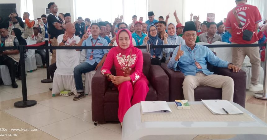 Suasana sangatlah nampak terlihat riuh dari masing-masing team relawan pemenang pasangan calon saat pemandu acara lakukan penyapaan terhadap ketiga pasangan calon Bupati dan calon Wakil Bupati Tulang Bawang.