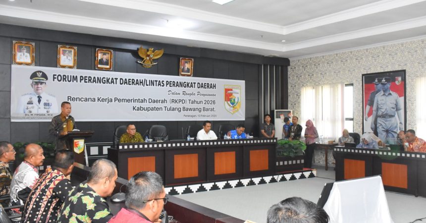 Catatanlampung.com – Tubaba – Penjabat Sekretaris Daerah (Sekda) Kabupaten Tulang Bawang Barat (Tubaba) Perana Putera, S.H.,M.H., membuka Forum Perangkat Daerah Rencana Kerja Pemerintah Daerah (RKPD) Kabupaten Tubaba Tahun 2026. Di Ruang Rapat Bupati, Kamis (13/02/2025).