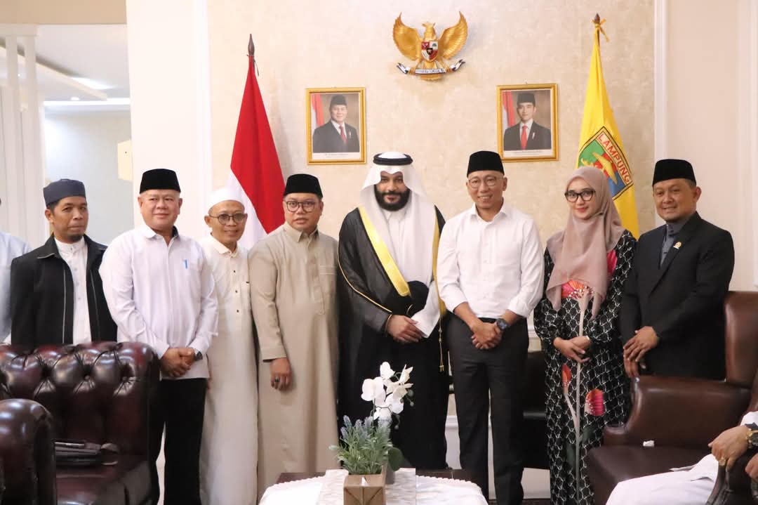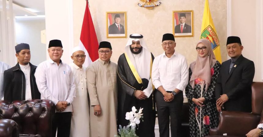 Catatanlampung.com-Bandar Lampung- Gubernur Lampung, Rahmat Mirzani Djausal, didampingi Wakil Gubernur Lampung, Jihan Nurlela, menerima audiensi Imam Besar dari Arab Saudi, Syaikh Abdurrahman Al-Ausy, di Guest House Mahan Agung, Selasa (4/3/2025).