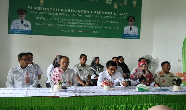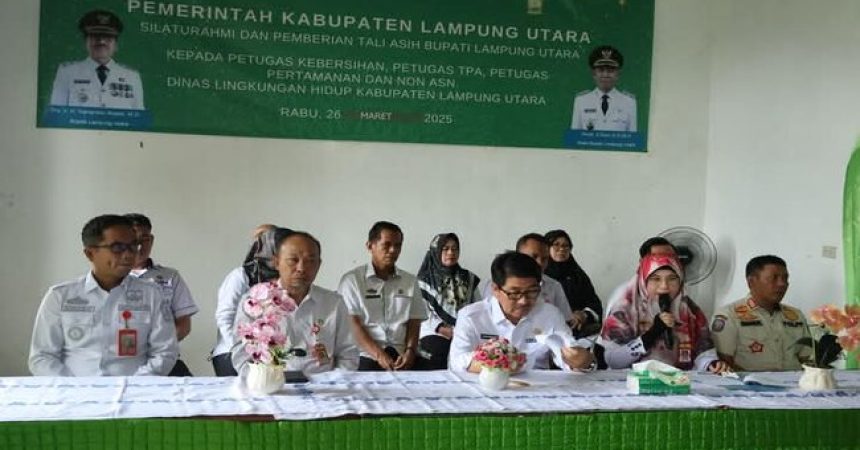 CatatanLampung, Lampung Utara, Rabu (26/3/2025) – Bupati Lampung Utara, Dr. Ir. H. Hamartoni Ahadis, M.Si., menghadiri acara pemberian tali asih bagi Petugas Penyapu Jalan, Sopir Armada Kebersihan, Kernet Armada Kebersihan, Petugas Tempat Pembuangan Akhir (TPA), dan Petugas Pertamanan Dinas Lingkungan Hidup Kabupaten Lampung Utara.