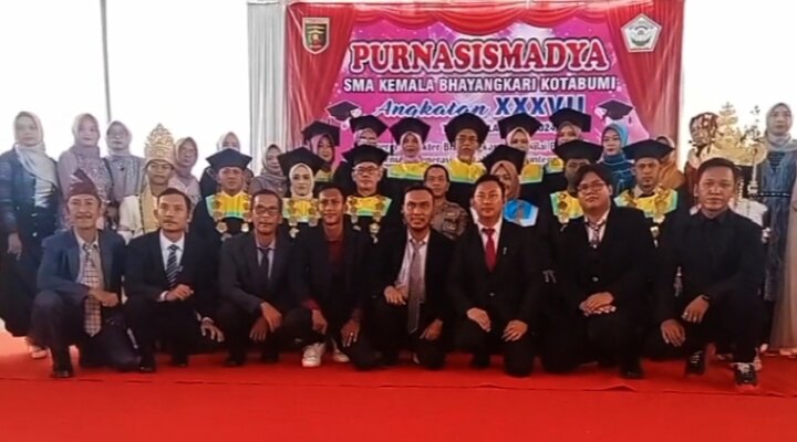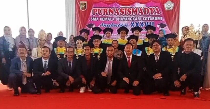 CatatanLampung,Lampung Utara, Sabtu (19/4/2025) – Purnasismadya SMA Kemala Bhayangkari Kotabumi Angkatan XXXVII Tahun Pelajaran 2024/2025 – Sebanyak 174 Siswa Sekolah Menengah Atas (SMA) Kemala Bhayangkari Kotabumi Lampung Utara Angkatan XXXVII Tahun Pelajaran 2024/2025 diwisudakan dalam acara Purnasismadya yang dilaksanakan di halaman sekolah setempat, pada Sabtu (19/04/2025).