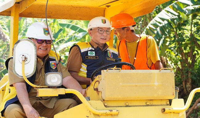 Setelah pelaksanaan Groundbreaking di lokasi ruas jalan Sp. Kota Agung – Kuripan di desa Tegineneng, Gubernur Mirza melanjutkan peninjauan di lokasi ruas jalan Kuripan-Sukamara yang berlokasi di Kecamatan Bulok Napal.