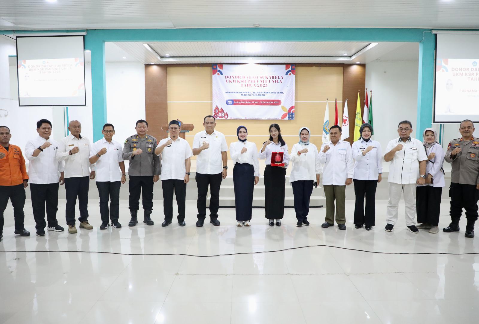 CatatanLampung, Bandar Lampung, Rabu (14/5/2025) – Ketua Palang Merah Indonesia (PMI) Provinsi Lampung, Purnama Wulan Sari Mirza membuka kegiatan Donor Darah Sukarela Unit Kegiatan Mahasiswa (UKM) Korps Sukarela (KSR) PMI Unit Unila Tahun 2025, di Aula Fakultas Pertanian Unila, Rabu (14/5/2025).