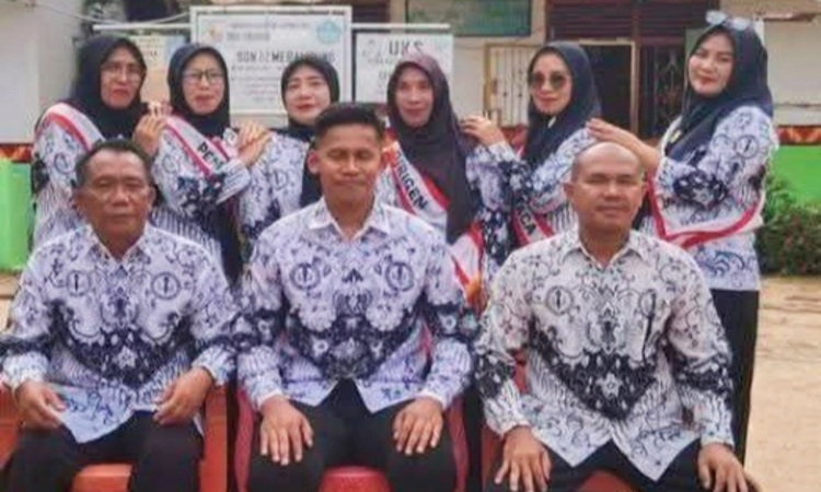 Kepala Sekolah, Erli Justi (berdiri belakang 3 dari kiri) dan dewan guru SDN 02 Merambung berfoto bersama usai pelaksanaan kegiatan Hari Anak Nasional, Rabu (23/07/2025). Kegiatan ini menjadi momentum untuk memperkuat semangat mendidik dan mendampingi anak-anak menuju masa depan yang gemilang – (Sumber foto: Nurliana/Cl).