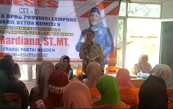 CatatanLampung, Sumber Tani, Lampung Utara, Kamis (24/7/2015) — Anggota DPRD Provinsi Lampung dari Fraksi Partai NasDem, Ir. Mardiana, ST., MT., yang juga menjabat sebagai Wakil Ketua Komisi V, menggelar kegiatan reses di Desa Sumber Tani, Kecamatan Abung Pekurun, Kabupaten Lampung Utara, pada Kamis (24/7/2025) pukul 13.00 WIB.