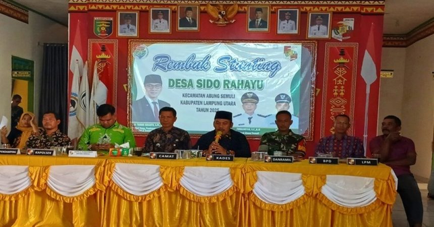 CatatanLampung, Lampung Utara, Kamis (7/8/2025) – Pemerintah Desa Sido Rahayu, Kecamatan Abung Semuli, menunjukkan komitmen nyata dalam pencegahan dan penanggulangan stunting dengan menggelar Rembuk Stunting yang melibatkan berbagai unsur masyarakat, Kamis (7/8/2025).