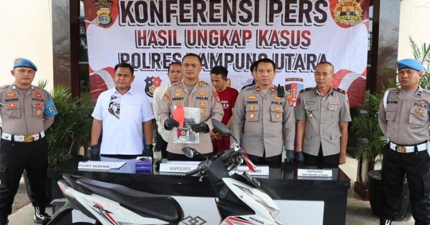 “Alhamdulillah kurang dari dua jam setelah korban ditemukan, tim Tekab 308 Polres Lampung Utara berhasil mengamankan pelaku,” kata Kapolres AKBP Deddy saat menggelar Konferensi Pers didampingi Waka Polres Kompol Yohanis, Kasat Reskrim AKP Apfryyadi dan Kapolsek Kotabumi Utara Iptu Hermanto, Jumat (22/8/2025).