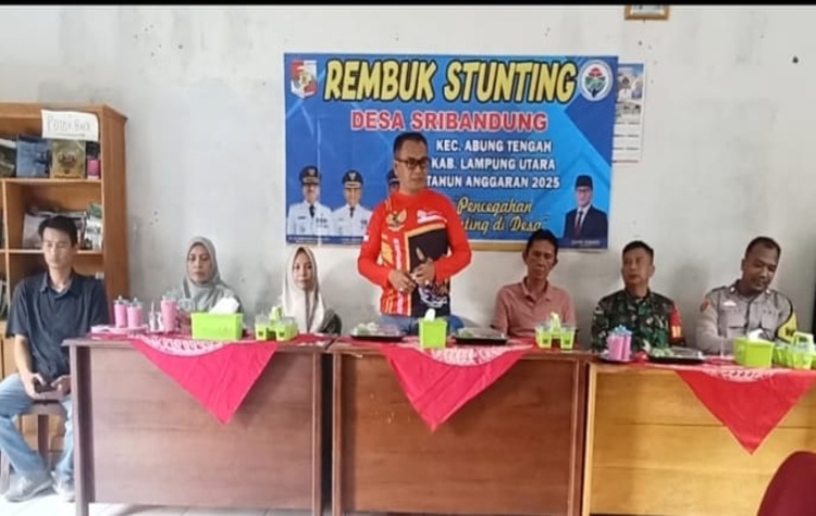 CatatanLampung, Lampung Utara, Jumat (22/8/2025) | Pemerintah Desa Sri Bandung, Kecamatan Abung Tengah, Kabupaten Lampung Utara, bersama kader desa menggelar Rembuk Stunting sebagai upaya serius menangani persoalan gizi dan pertumbuhan anak, Jumat (22/8/2025) pukul 13.00 WIB di aula kantor desa setempat.