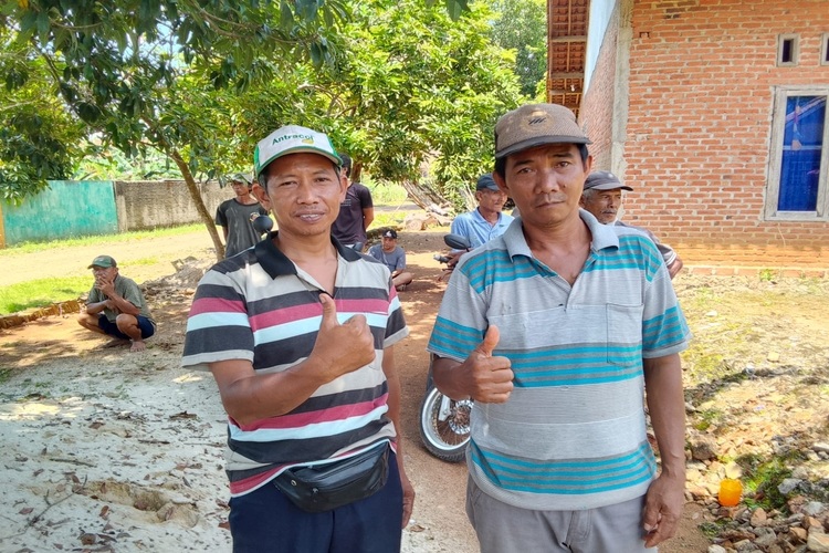 Marsudi (kiri), Ketua RT 02, bersama Jumadi (kanan), Ketua RT 01 Kelurahan Rejosari, saat menghadiri kegiatan gotong royong perbaikan ruas Jalan Lebung Curup, Minggu (24/8/2025) – (Sumber: Romli Moershaf/Cl).