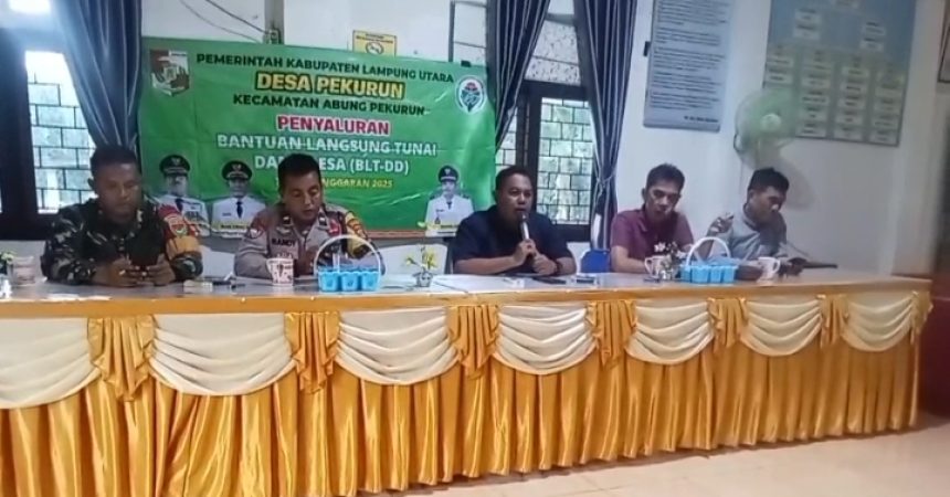Rangkaian kegiatan penyaluran Bantuan Langsung Tunai Dana Desa (BLT-DD) tahap III kepada 25 keluarga penerima manfaat (KPM) pada Jumat (19/9/2025) di Desa Pekurun Kecamatan Abung Pekurun – (Jurnalis: Andi SM/Cl).
