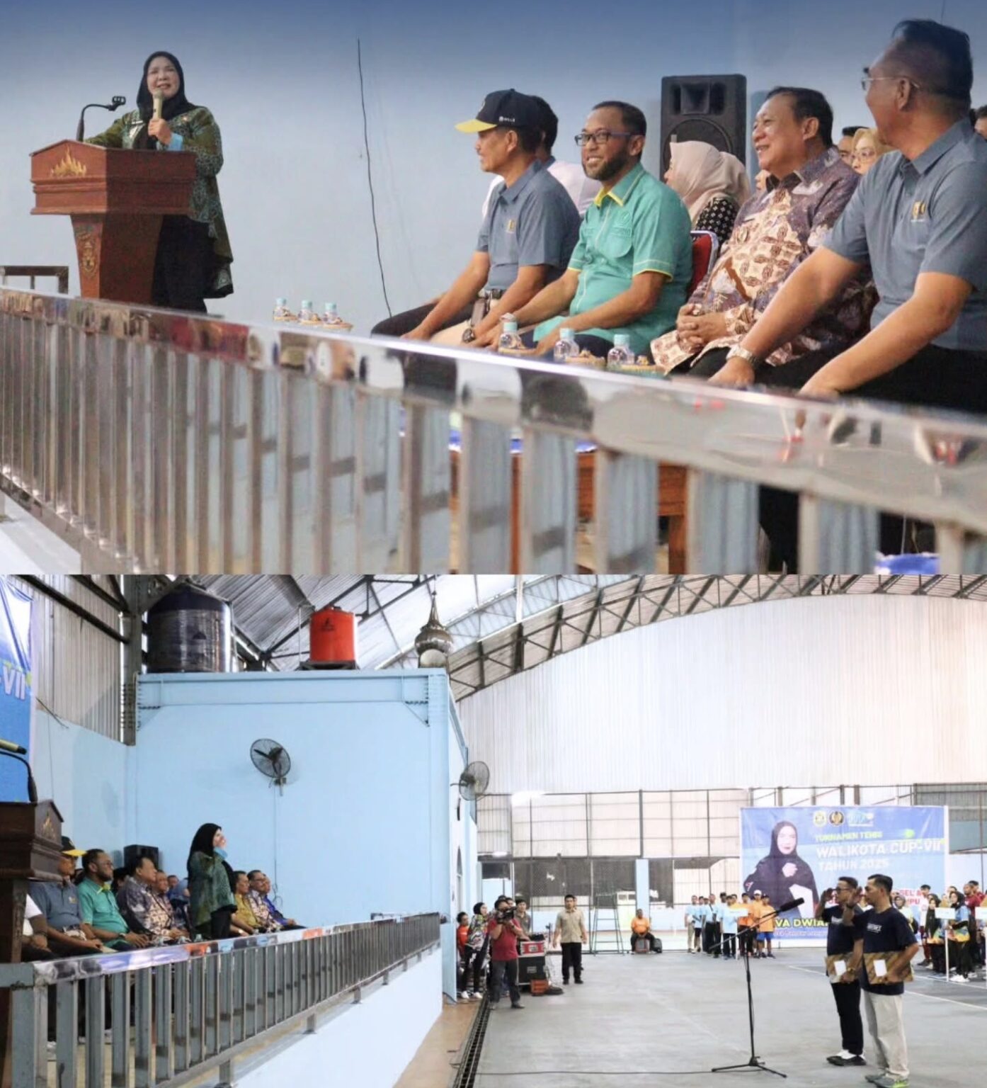 Catatanlampung.com-Bandar Lampung-Dengan di tandai pemukulan bola tenis pertama oleh Walikota Hj. Eva Dwiana, Kejuaraan Tenis Lapangan Walikota CUP VII yang bertempat di lapangan tenis indor pahoman, secara resmi di buka, Kamis (25/09/2025).
