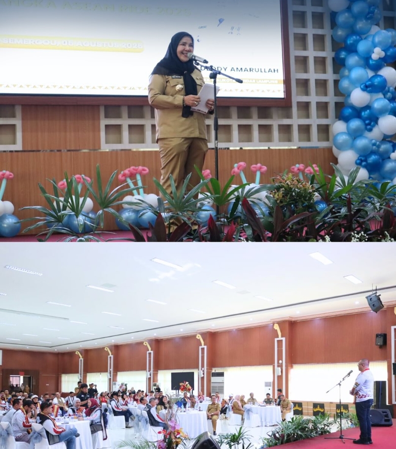 Wali Kota Bandar Lampung Hj. Eva Dwiana Melepas IMBI Asean Ride 2025 Di Aula Gedung Semergo Pemkot Bandar Lampung, Selasa (5/08/2025).