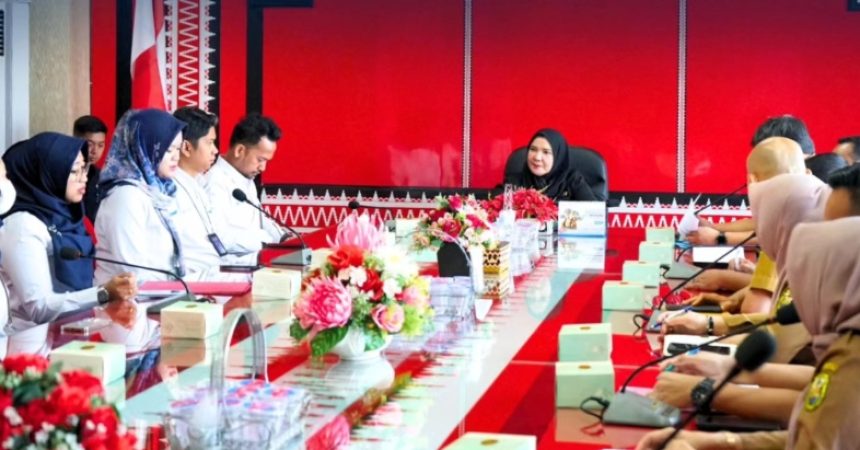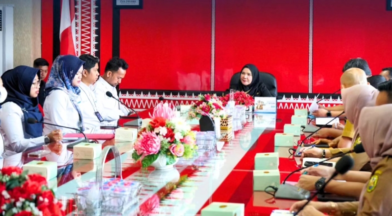 Walikota Bandar Lampung, Hj. Eva Dwiana menerima kunjungan silaturahmi PLN Lampung, Bapak Presly Silaen Manager Up3 Tanjung Karang di Ruang Kerja Walikota. Senin (11/08/2025).
