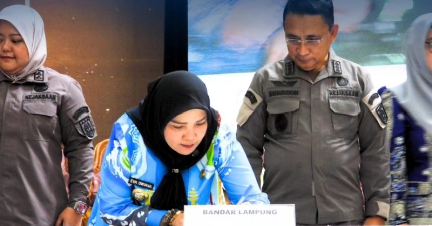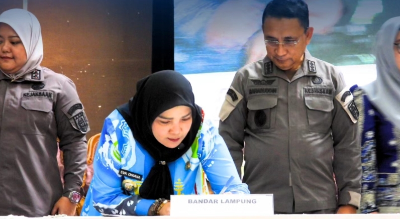 Walikota Bandar Lampung, Hj. Eva Dwiana Menghadiri Acara Penandatanganan Kerjasama antara Bupati/Walikota dan Kepala Kejaksaan Negeri Se-Provinsi Lampung pada Kamis, (14/08/2025).