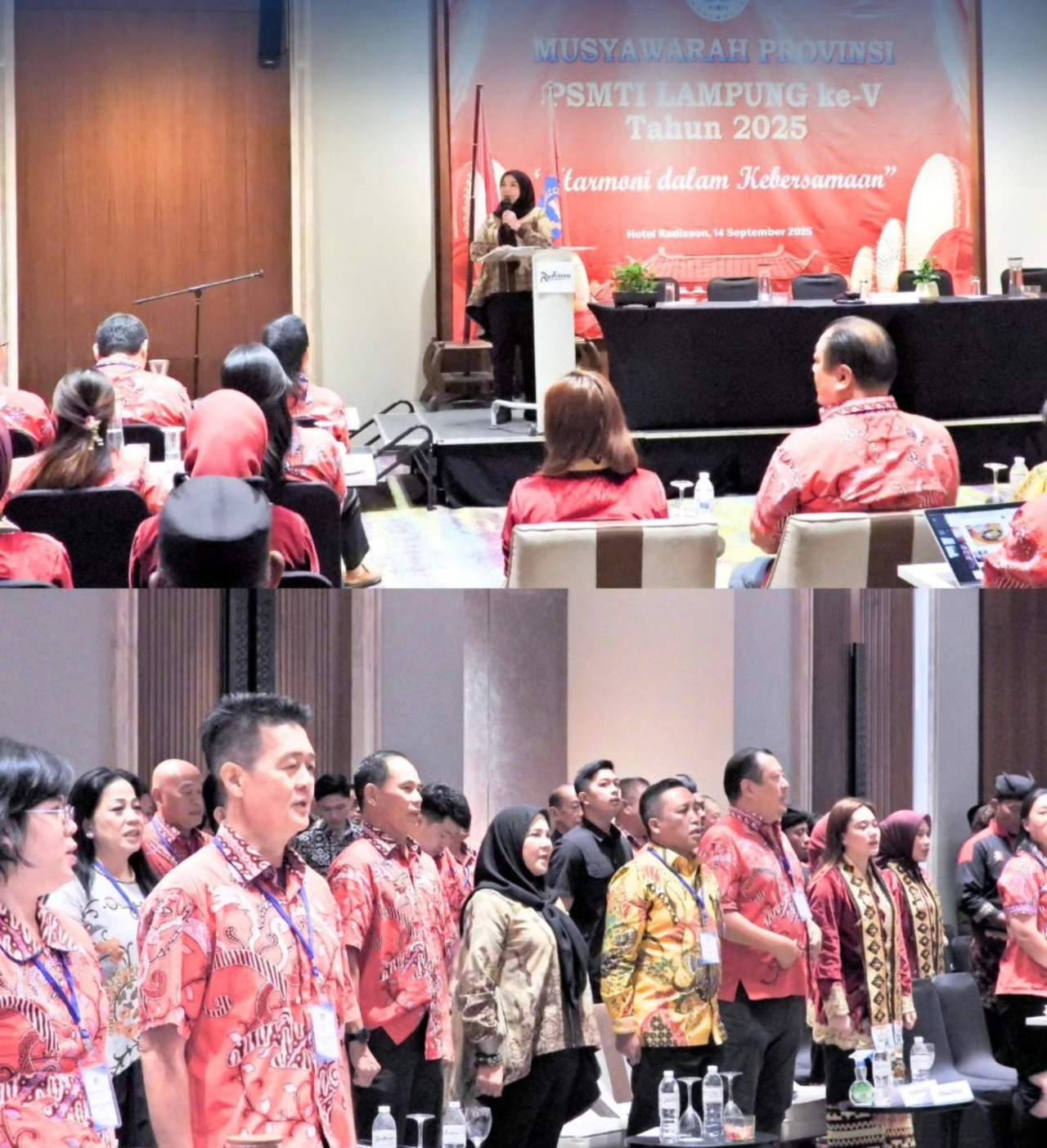 Walikota Bandar Lampung, Hj. Eva Dwiana menghadiri Acara Musyawarah PSMTI Provinsi Lampung Ke-V Tahun 2025. Minggu, (14/9/2025).