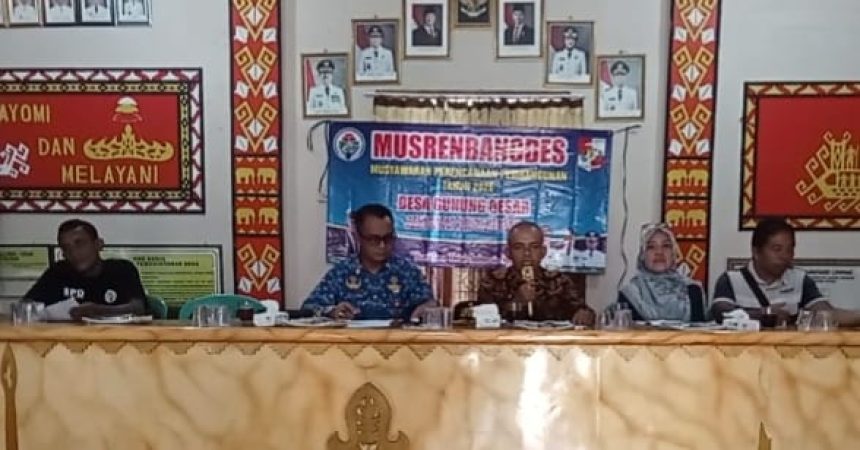“Musrenbangdes ini adalah wadah kita bersama untuk menyalurkan aspirasi dan menyusun program pembangunan yang benar-benar bermanfaat bagi masyarakat. Mari kita jadikan forum ini sebagai langkah nyata untuk meningkatkan kesejahteraan warga Desa Gunung Besar,” ujar Tarmidi.