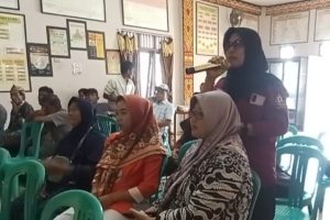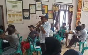 Seorang peserta Musrenbangdes Desa Gunung Besar menyampaikan aspirasi terkait program pembangunan tahun 2026 di kantor desa setempat, Kecamatan Abung Tengah, Lampung Utara, Jumat (17/10/2025). (Sumber foto: Andi SM/Cl).