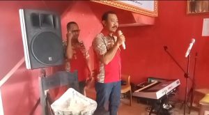 LBH DPP GML Provinsi Lampung Sopadly menyampaikan sambutan dalam peringatan HUT ke-7 Ormas Gema Masyarakat Lokal (GML) Indonesia Kabupaten Lampung Utara, Rabu (22/10/2025) – (Sumber foto: Andi SM/Cl).