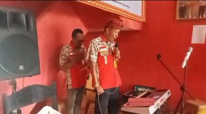 Sekretaris Jenderal GML Lampung Utara membacakan ikrar organisasi dalam rangka perayaan HUT ke-7 Ormas Gema Masyarakat Lokal (GML) Indonesia Kabupaten Lampung Utara, Rabu (22/10/2025) – (Sumber foto: Andi SM/Cl).