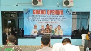 CatatanLampung, Lampung Utara, Jum’at (24/10/2025) – Dalam upaya meningkatkan kualitas gizi dan mencerdaskan anak bangsa, SPPG Pemuda Muhammadiyah bersama SMK Muhammadiyah Kecamatan Abung Semuli menggelar Grand Opening Program Makanan Bergizi Gratis (MBG), Jumat (24/10/2025) di Dapur MBG Desa Semuli Jaya, Kecamatan Abung Semuli, Kabupaten Lampung Utara.