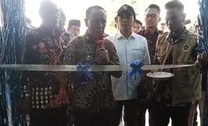 Staf Ahli Bupati Lampung Utara, Man Kodri, S.H., M.M., didampingi panitia dan jajaran SPPG Pemuda Muhammadiyah saat melakukan prosesi pemotongan pita sebagai tanda Grand Opening Program Makanan Bergizi Gratis di Dapur MBG Desa Semuli Jaya, Jumat (24/10/2025) – (Sumber foto: Andi SM/Cl).