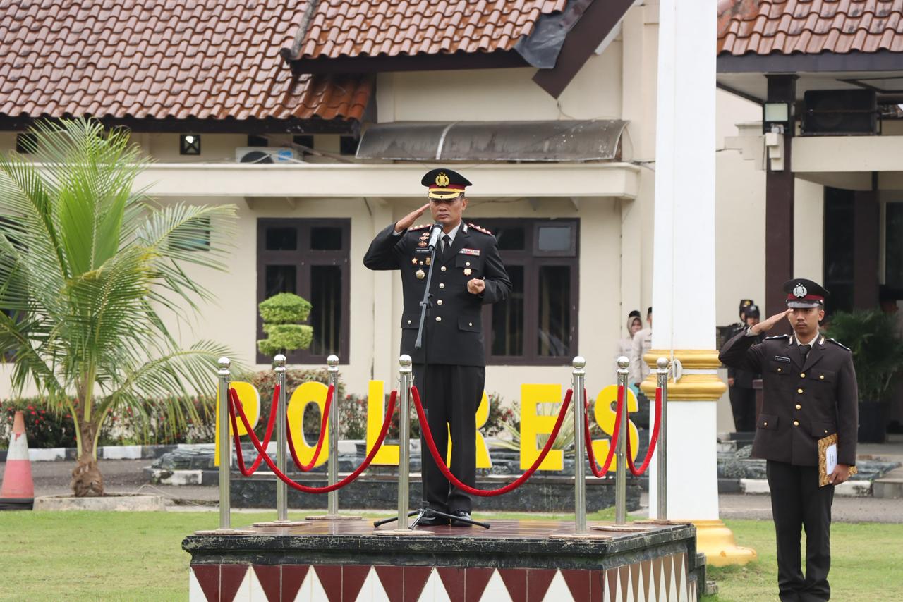 Upacara tersebut dipimpin langsung oleh Kapolres Lampung Utara AKBP Deddy Kurniawan, S.H., S.I.K., M.Si., selaku Inspektur Upacara. Kegiatan ini diikuti oleh para pejabat utama (PJU), perwira, seluruh personel Polres Lampung Utara, serta aparatur sipil negara (ASN) di lingkungan Polres Lampung Utara.