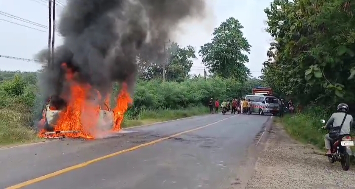 CatatanLampung, Lampung Utara, Rabu (25/2/2026) – Sebuah mobil Toyota Avanza dengan nomor polisi BE 1034 EP mengalami kebakaran hebat saat melintas di Jalan Lintas Sumatra, Desa Blambangan, Kecamatan Blambangan Pagar, Kabupaten Lampung Utara, Rabu (25/2/2026). Peristiwa tersebut terjadi saat kendaraan melaju dari arah Kotabumi menuju Bandar Jaya.