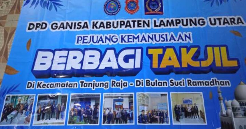 CatatanLampung, Lampung Utara, Sabtu (7/3/2026) – Dewan Pimpinan Daerah (DPD) GANISA Kabupaten Lampung Utara menggelar kegiatan bakti sosial dengan membagikan takjil kepada masyarakat di Kecamatan Tanjung Raja, Sabtu (7/3/2026).